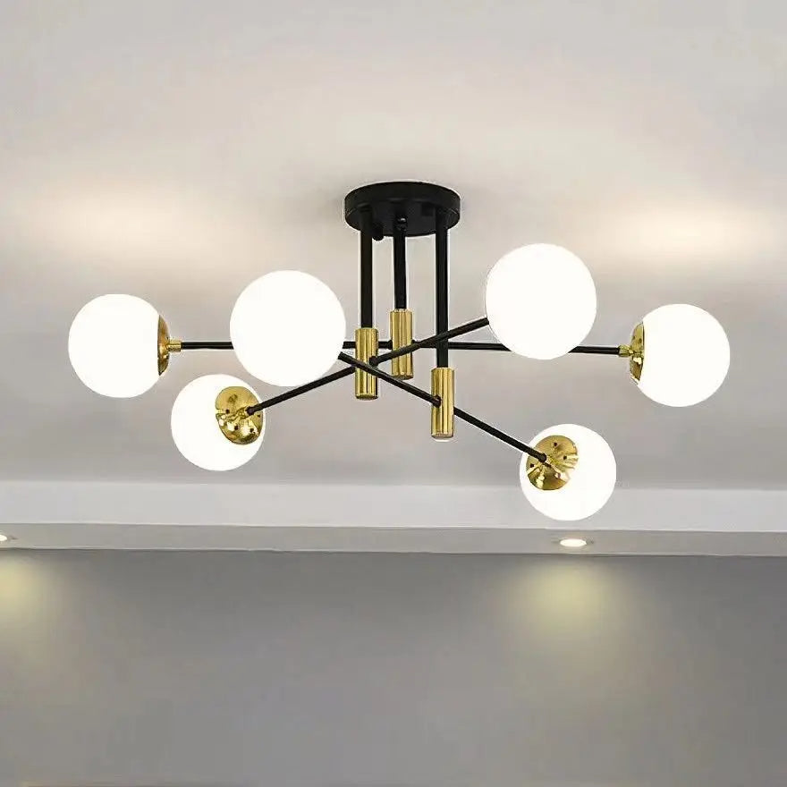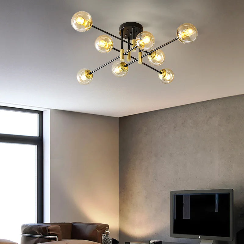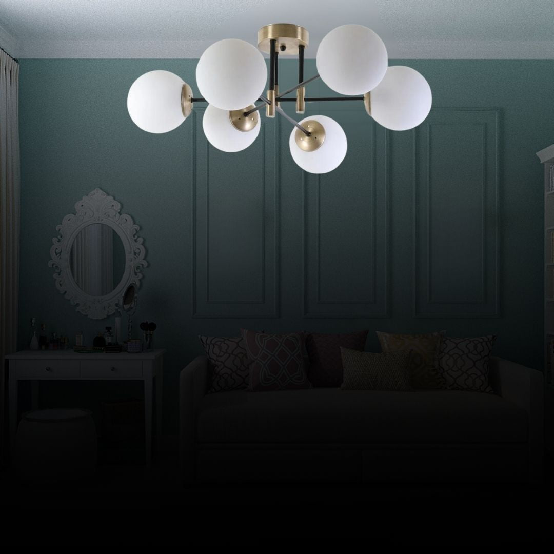 6'Lı Retro Modern Uzun Tavan Top Cam Sarkıt Avize