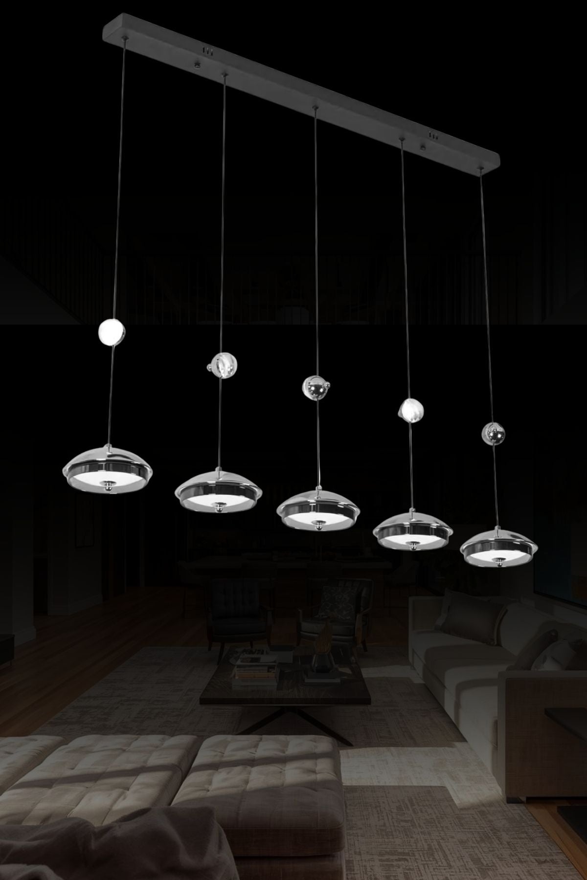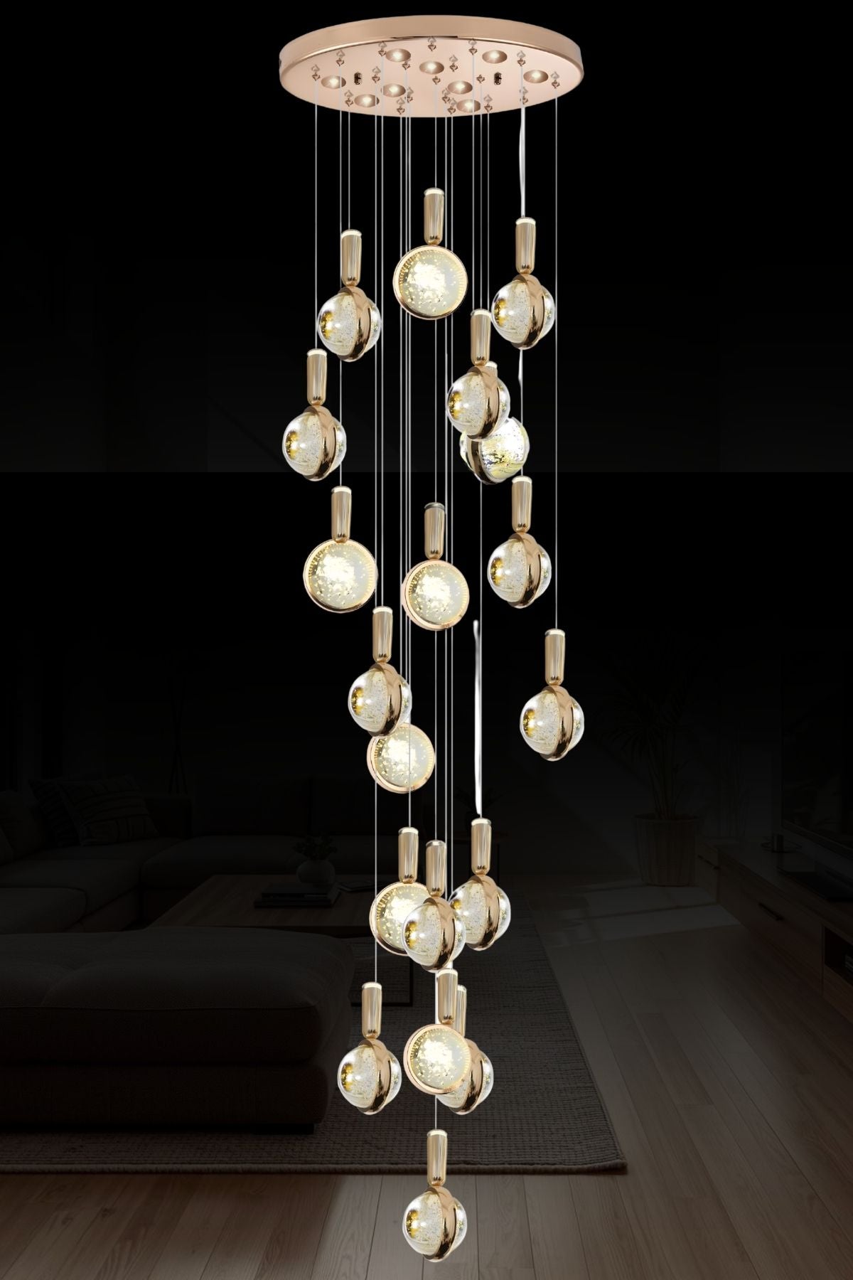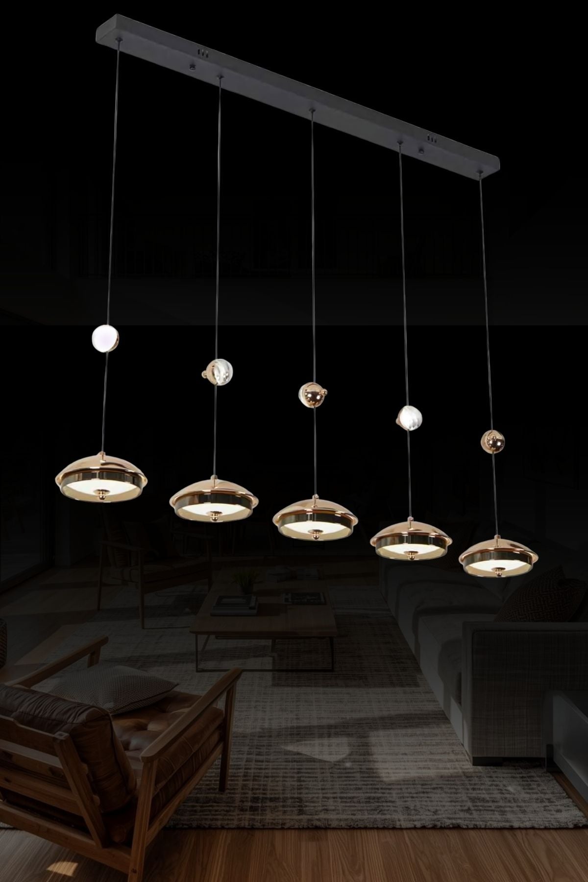6'Lı Retro Modern Uzun Tavan Top Cam Sarkıt Avize