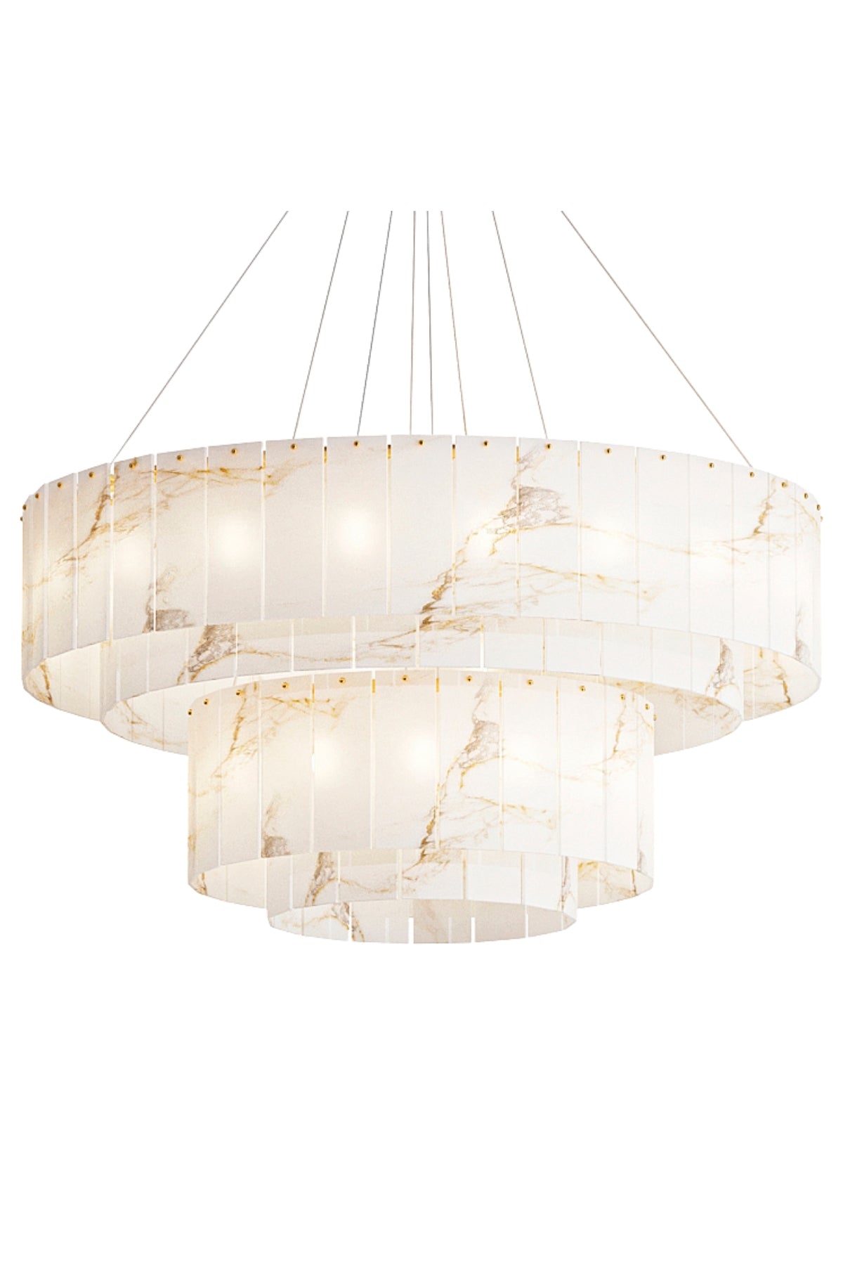 Gerçek mermer ağırlığı taşımak istemeyen kullanıcılar için geliştirilmiş modellerdir. Hafif, dayanıklı ve çok daha ekonomik bir fiyat aralığı sunarlar. Görünüm olarak mermeri birebir taklit eden bu avizeler; taşın dezavantajı olmadan dekoratif bir duruş sağlar. “Mermer görünümlü avize” aramalarının Google’da yoğunlaşmasının sebebi tam olarak budur: yüksek şıklık, uygun fiyat ve hafif yapı.