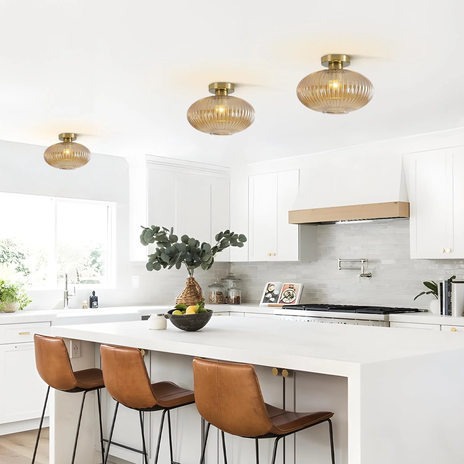 Camlı plafonyer avize
