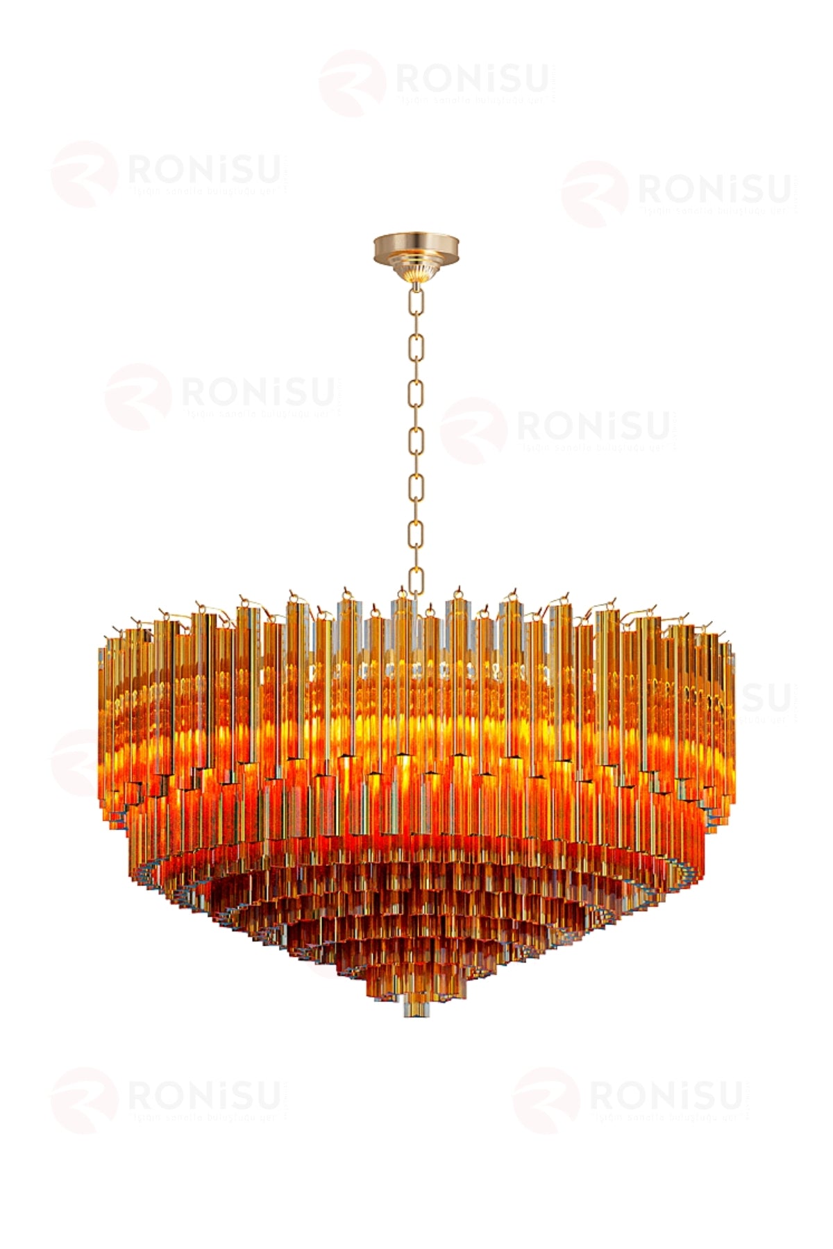 Ronisu'nun özel tasarımı olan Borexia, modern çizgilerle klasik lüksü bir araya getiriyor. Prizma kesim özel camların katmanlı dizilimiyle oluşan bu tasarım, ışığı her açıda kırarak mekanınıza benzersiz bir derinlik ve ışıltı katar. Salonlardan otel lobilerine kadar her geniş mekana prestij katmak için tasarlandı.