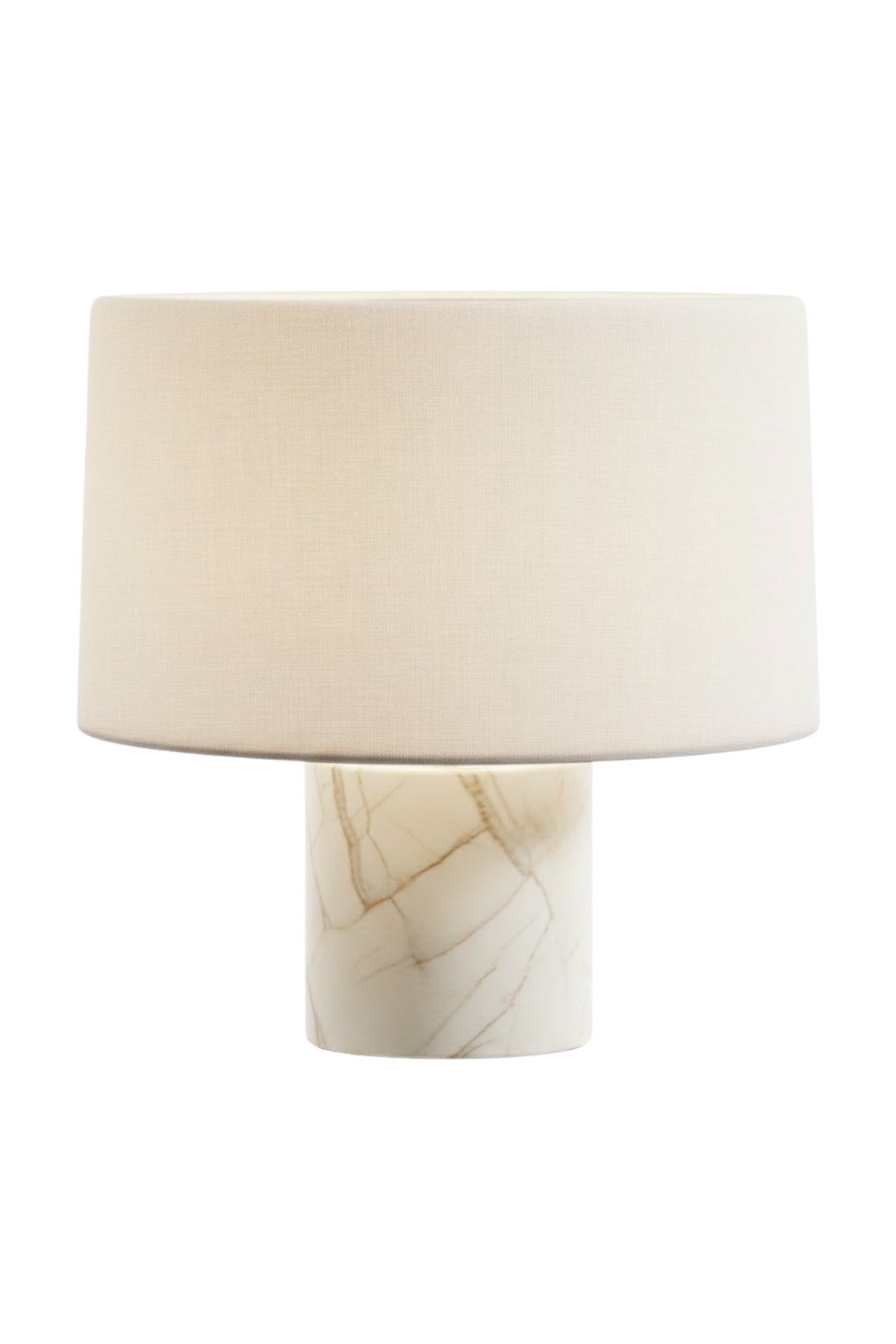 Malzeme: Işığı yarı geçirgen bir şekilde süzen, mermer/onyx dokulu özel silindir gövde ve dokulu birinci sınıf bej keten kumaş başlık.