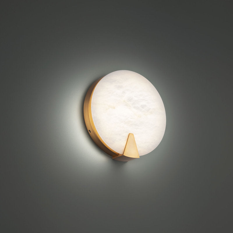 LUNA Doğal Mermer Duvar Apliği, dairesel formuyla doğadan ilham alır ve ışığı zarif bir şekilde mekâna yayar.