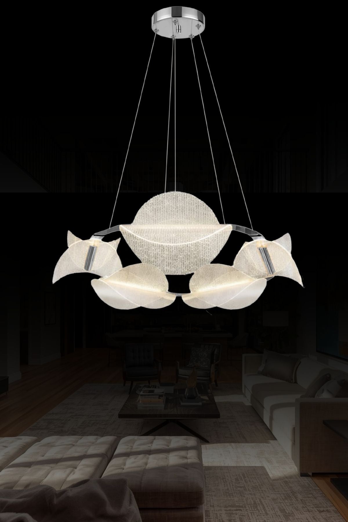 | Tasarım Tipi | Modern, Çember Etrafına Dizilmiş Yaprak/Kıvrımlı Form Sarkıt Tasarımı |