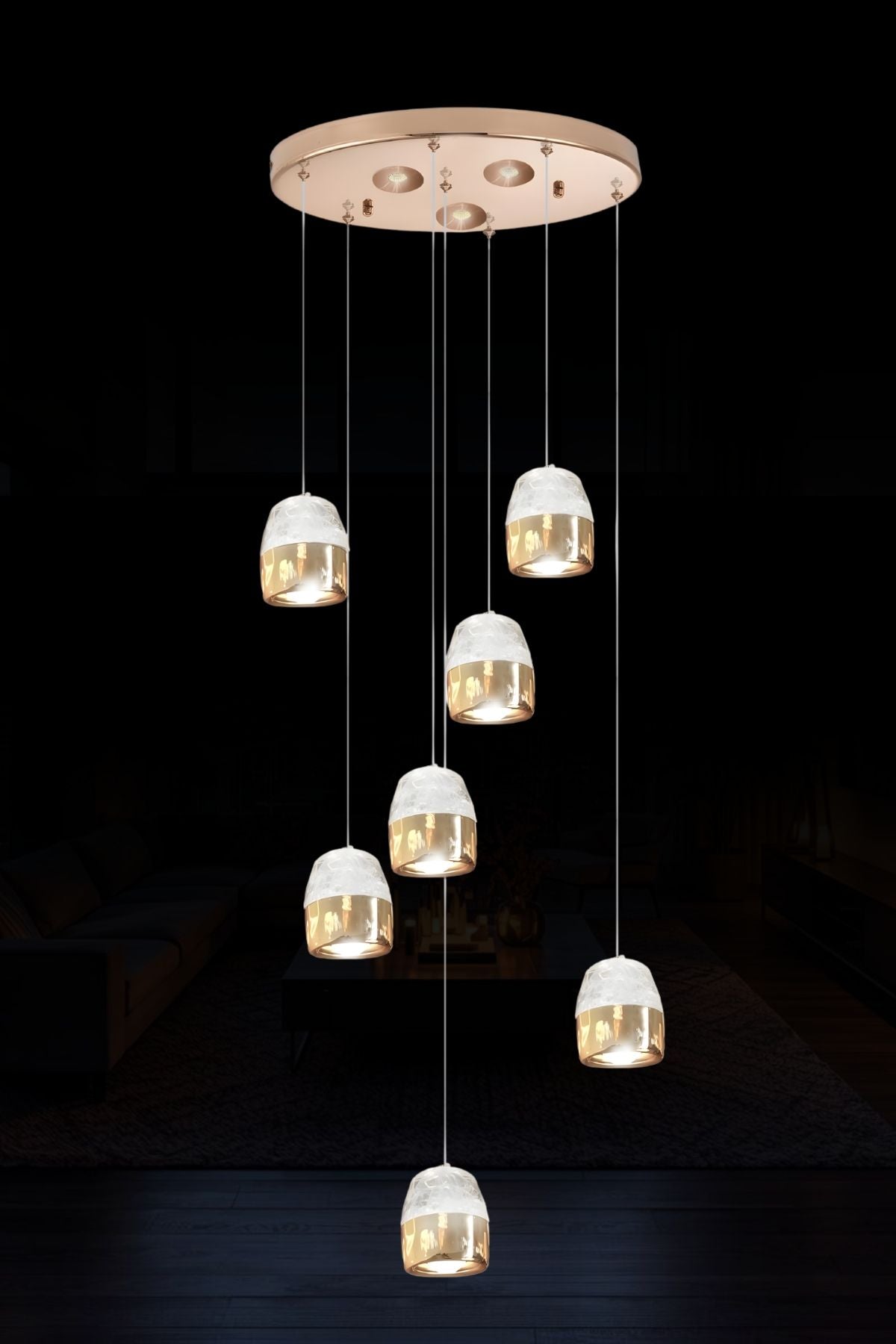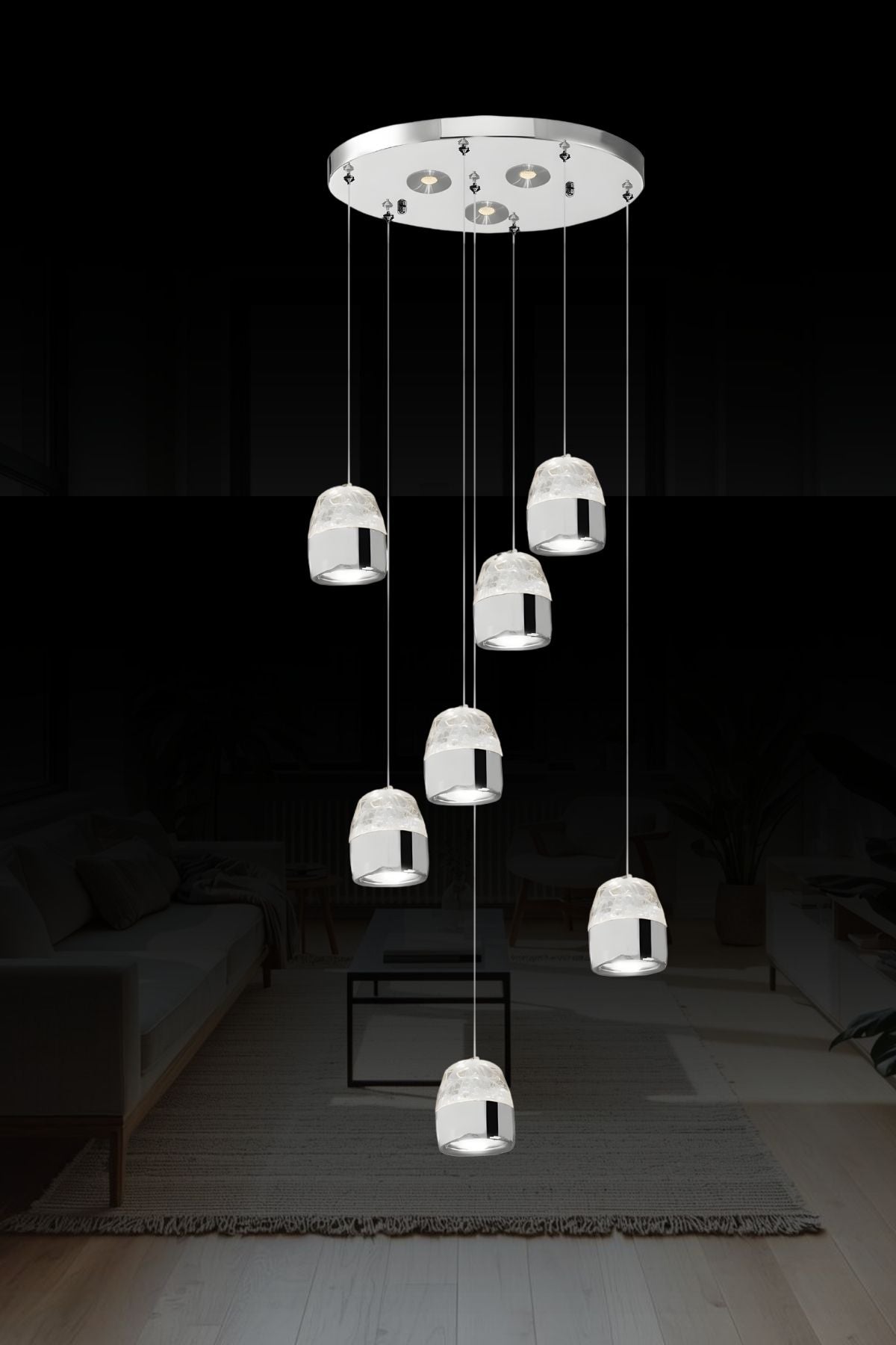 | Tasarım Tipi | Modern, 7'li Kademeli Düşüşlü Sarkıt (Merdiven boşluğu, antre ve yüksek tavanlar için dikey şelale form) |