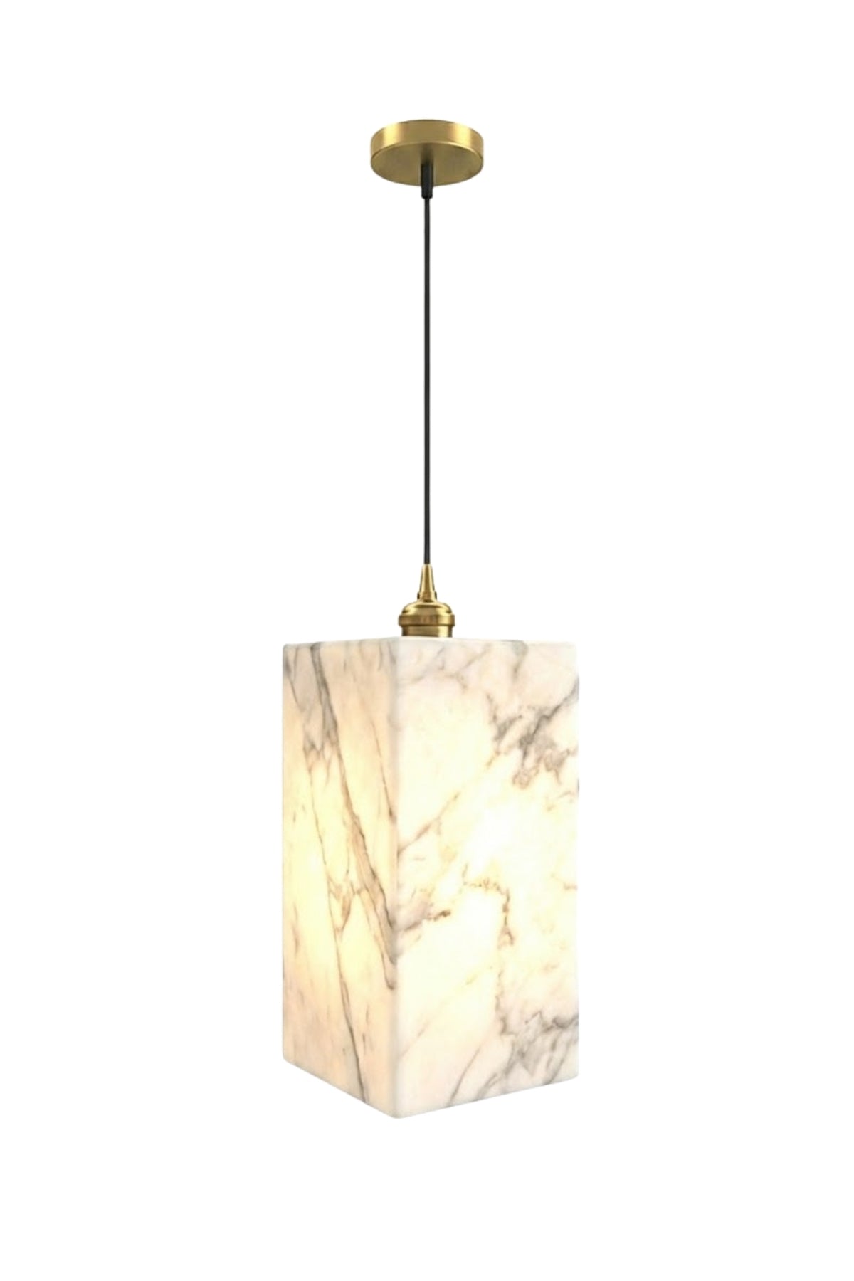Tasarım: İnce siyah kablo ve gold duy detayı ile mermerin heybetli duruşu arasında modern bir denge kurulmuştur.