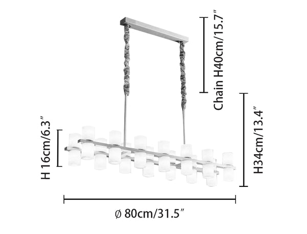 El işçiliğiyle hazırlanmış doğal mermer gövde, ışığı yumuşak bir şekilde yansıtarak ortamda sıcak ve dengeli bir atmosfer yaratır. Altın tonlarındaki pirinç detaylar, modern sadeliği lüks dokunuşlarla tamamlar.Yatay formda tasarlanan bu avize, özellikle yemek masaları, oturma alanları ve geniş salonlar için ideal bir merkez aydınlatma çözümüdür.
