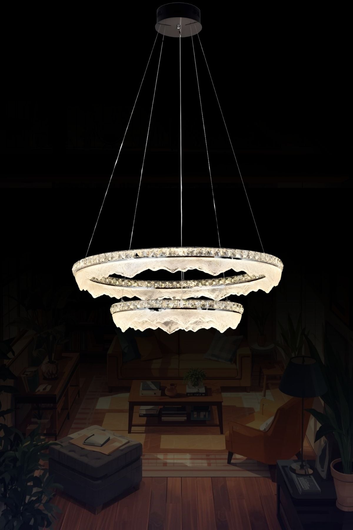 Salon, yemek masası üzeri, antre, yatak odası, merdiven boşluğu, otel ve lobi alanları için uygundur.