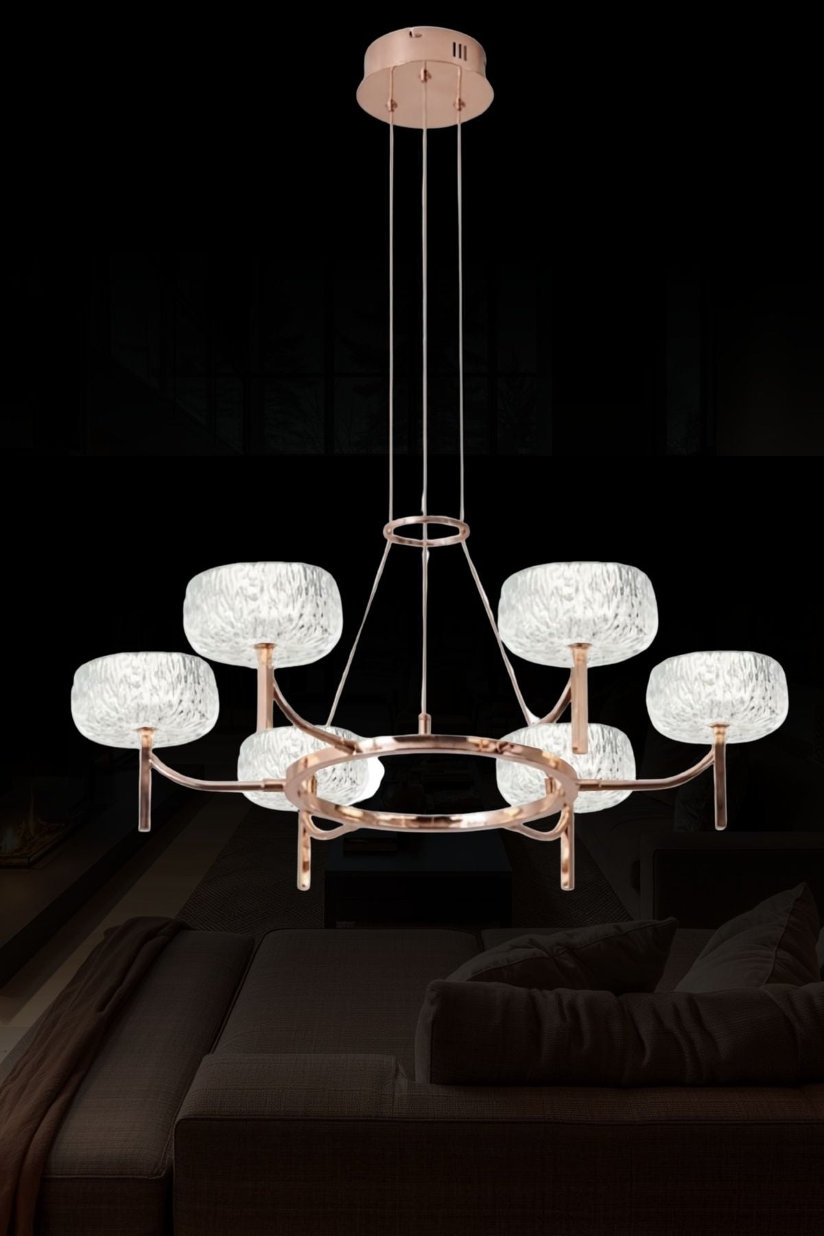 Vetra Modern 6 Kollu Dokulu Akrilik Geniş Çaplı 80 cm Led Avize VTR-6K80-W95